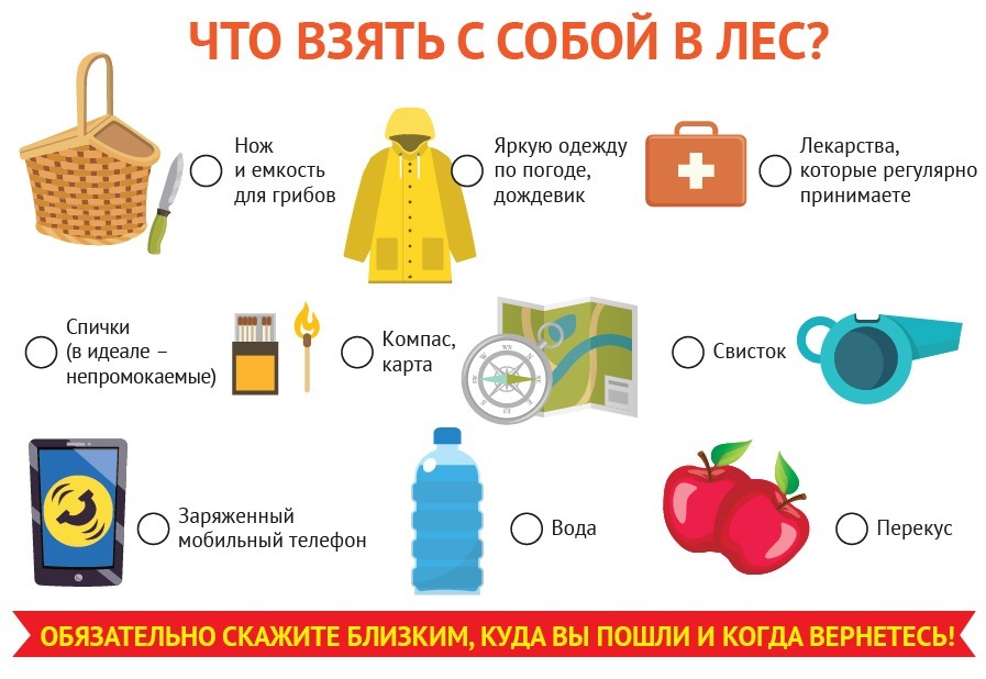 К походу в лес следует тщательно подготовиться и прежде всего выбрать подходящую емкость. Светлана Кучерова советует брать вентилируемую тару, лучше всего подойдет корзина. Сгодится и ведро, но в этом случае грибы нужно поскорее доставить к месту переработки, а вот полиэтиленовые мешки категорически не рекомендуются, в них ценный продукт быстро испортится. Потребуются также нож, чтобы срезать грибы, компас или навигатор, полностью заряженный телефон.