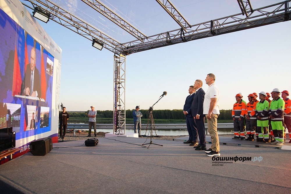 Глава Башкортостана в своём выступлении поблагодарил Президента России за поддержку развития республики, а также отметил эффективную работу с компанией «Автодор» по строительству участка трассы М-12.