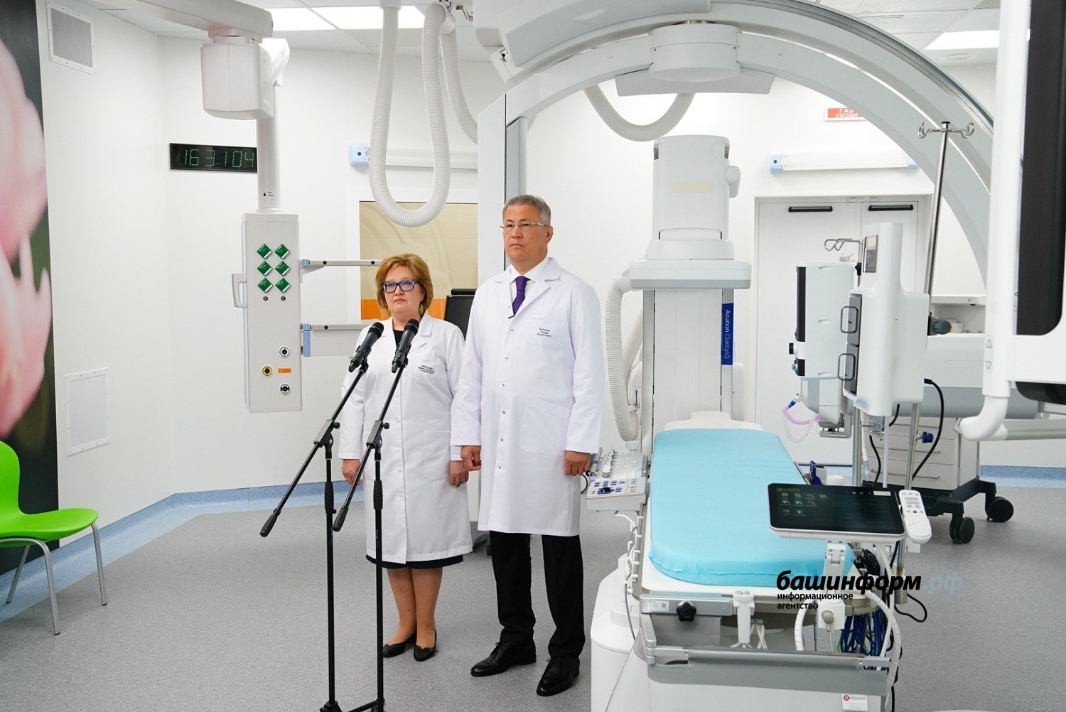 А уже 10 июня 2025 года Президент России в режиме видеосвязи провел открытие новых объектов здравоохранения страны. Среди них новый хирургический корпус Республиканского кардиоцентра в Уфе. Строительство многоэтажного здания общей площадью около 32 тысяч квадратных метров стартовало в июле 2019 года. Здесь разместились приемное отделение с диагностическими кабинетами, поликлиника, 10 операционных блоков с реанимацией, отделения рентгенохирургии и кардиохирургии, стерилизационный комплекс, административный блок и аптечно-распределительный пункт. Стоимость объекта составила 10,7 млрд рублей, средства выделены из бюджета Башкортостана.