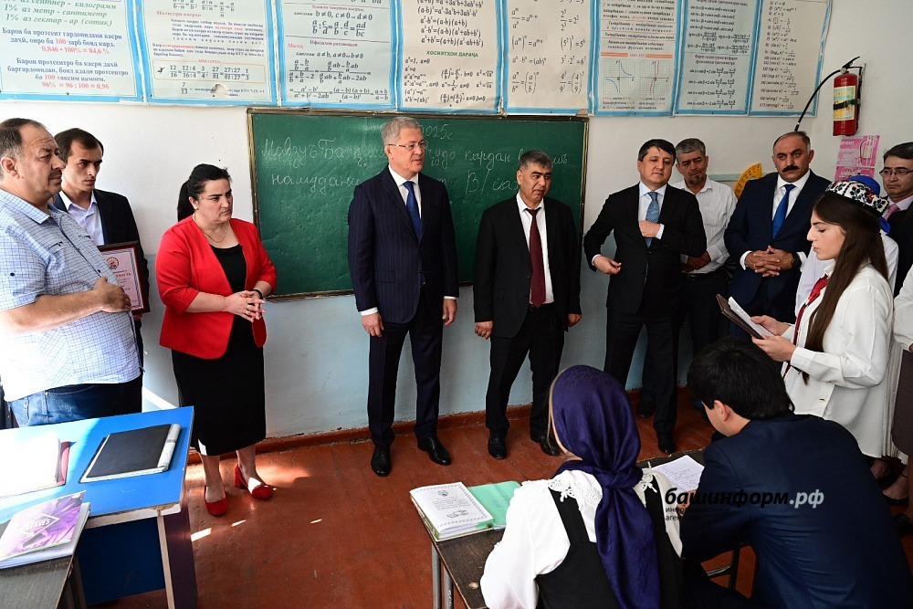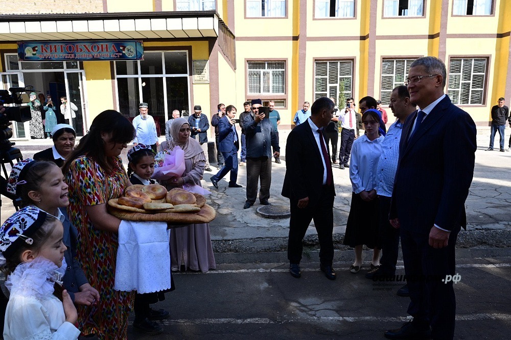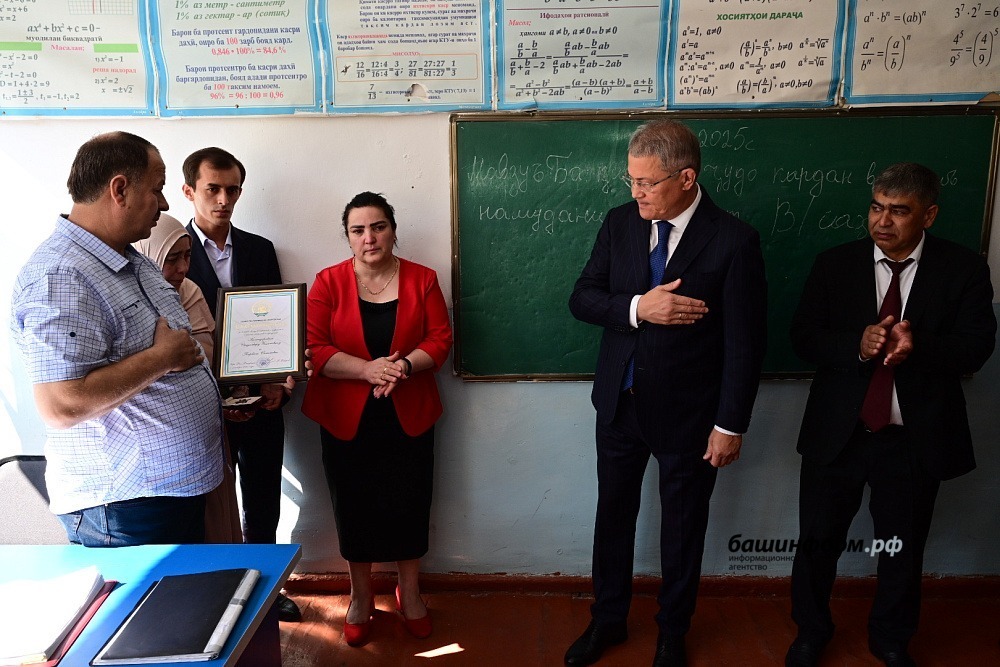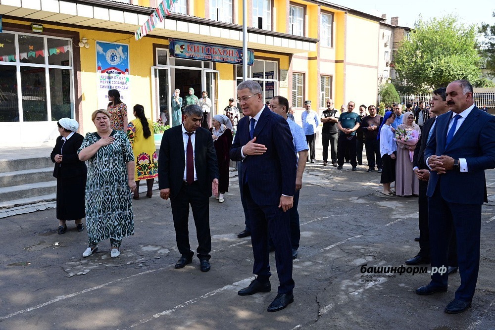 В Душанбе Радий Хабиров посетил школу, в которой учился Ходжимурод Каландаров, пообщался с педагогами и учениками. Руководитель республики пожелал ребятам хорошей учёбы.
