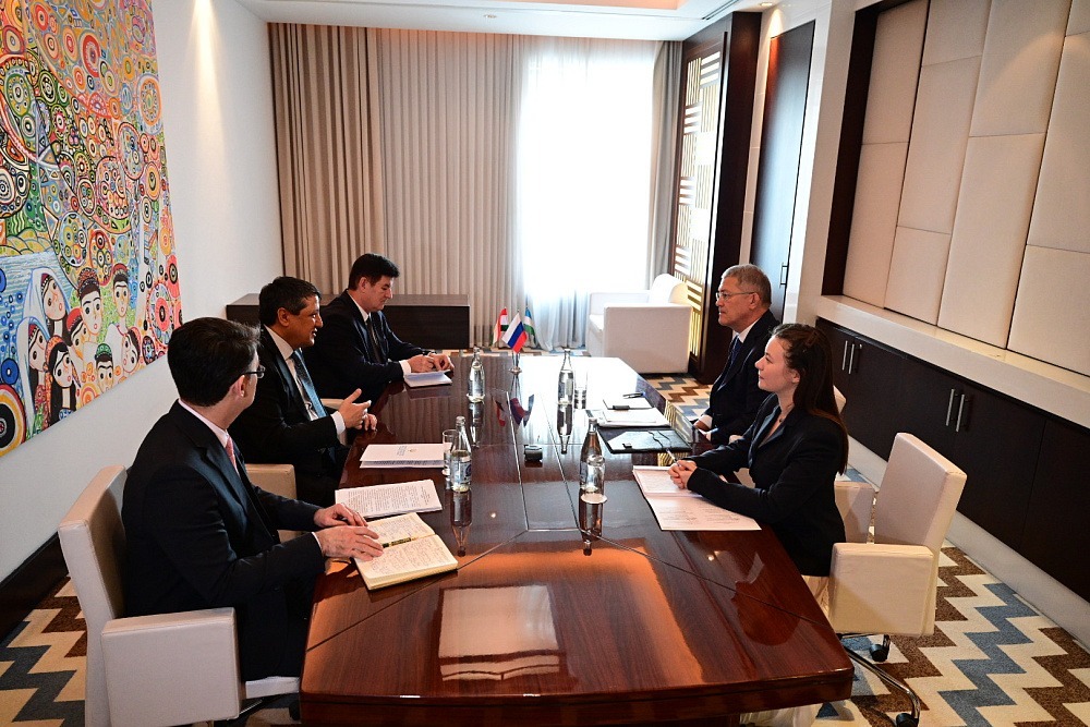 – Мы работаем в составе официальной делегации Российской Федерации. И то, что Башкортостан представлен здесь, считаю высокой оценкой деятельности республики на внешнеэкономическом треке, – сказал Радий Хабиров.