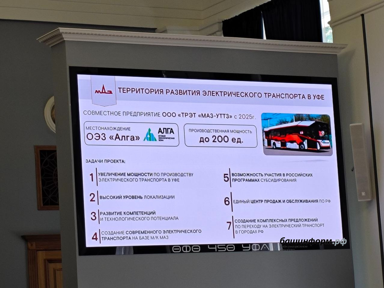 На пленарном заседании бизнес-форума представители двух республик презентовали потенциал своих предприятий в целях дальнейшего сотрудничества. Представители предприятий, у которых уже налажены кооперационные связи, поделились результатами взаимодействия. Так, замдиректора по маркетингу «МАЗа» Оксана Михеева рассказала о синергии технологического потенциала России и Беларуси на примере сотрудничества с УТТЗ. За 5 лет совместной работы произведено более 690 троллейбусов, которые работают в 9 городах России. Сегодня уфимское предприятие на базе машинокомплектов МАЗ выпускает две модели троллейбусов «Горожанин» (большого и особо большого класса). Они имеют автономный ход 20 и 30 км и вмещают порядка 100 и 150 пассажиров соответственно. Вторая, более мощная и вместительная модель – новинка 2025 года. Уфимский завод является одним из лидеров по выпуску троллейбусов в России, ему принадлежит 42% рынка. Сейчас готовится к выпуску новая модель троллейбуса – низкопольная с оригинальным дизайном. Оксана Михеева назвала совместное производство примером обеспечения технологической независимости двух стран. В планах – дальнейшее расширение производства в рамках совместного предприятия МАЗ и УТТЗ – ТРЭТ (Территория развития электротранспорта), которое будет работать в ОЭЗ «Алга».