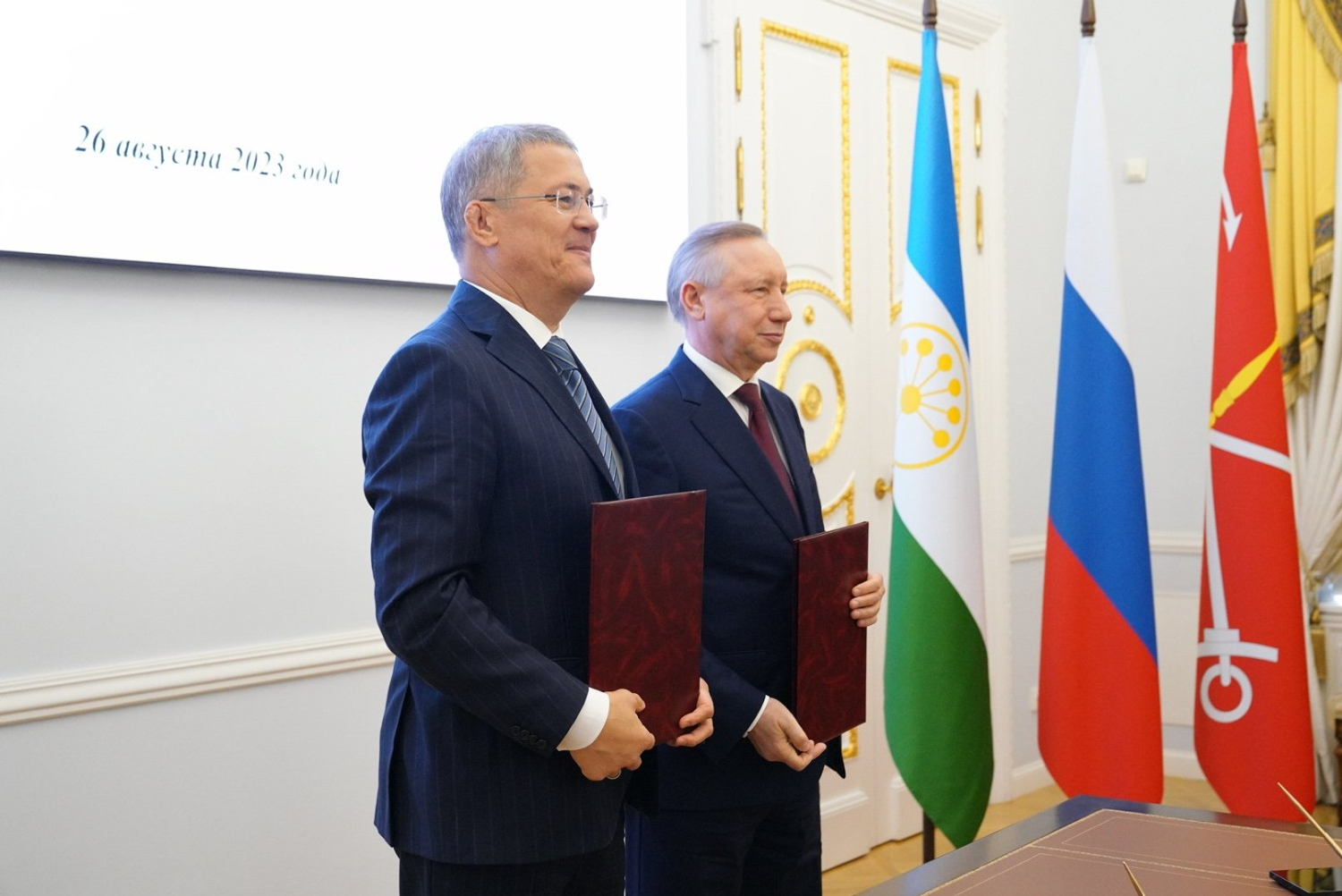 Радий Хабиров и Александр Беглов в завершение встречи подписали план мероприятий «дорожной карты» по развитию сотрудничества Санкт-Петербурга и Республики Башкортостан на 2024–2027 годы.