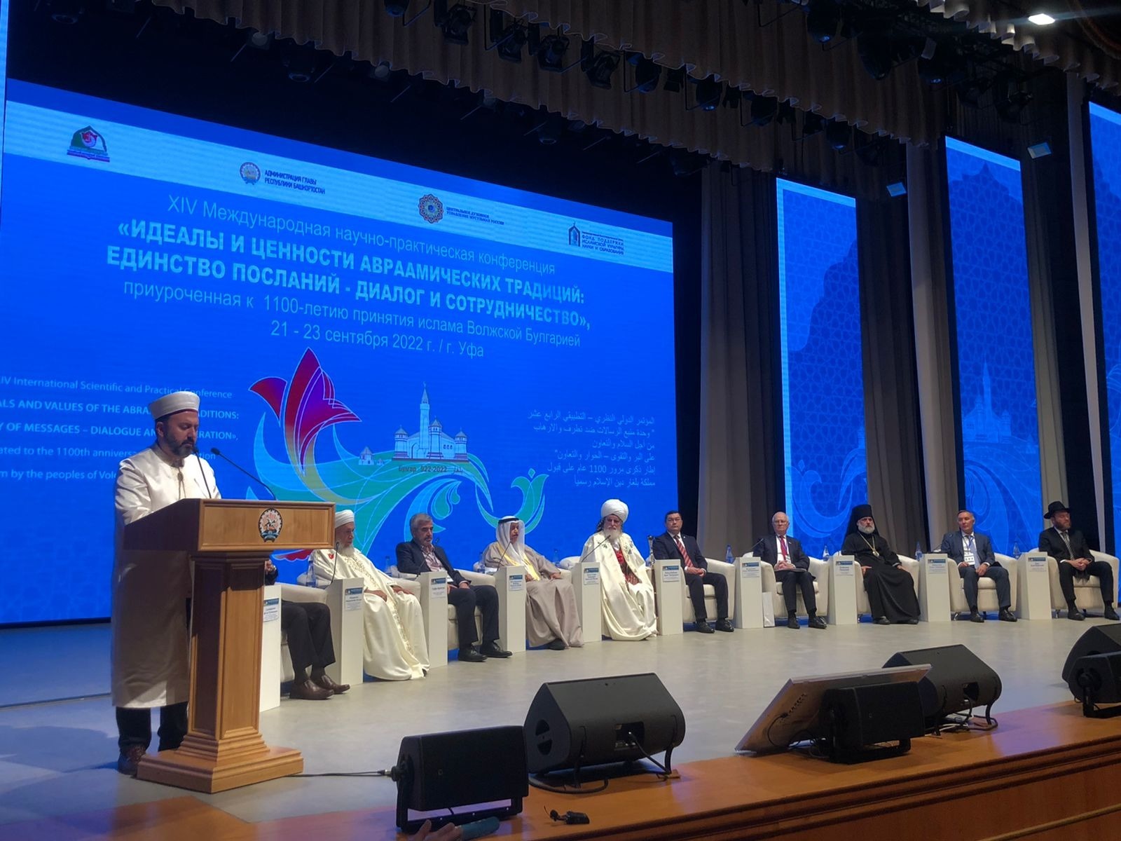В столице Башкирии продолжаются праздничные мероприятия, посвященные 1100-летию принятия ислама Волжской Булгарией и 40-летию служения Шейх-уль-Ислама Талгата Таджуддина на посту председателя Центрального духовного управления мусульман (ЦДУМ) России. Как ранее сообщал «Башинформ», накануне в Уфе открылась XIV Международная научно-практическая конференция «Идеалы и ценности авраамических традиций: Единство посланий – диалог и сотрудничество», собравшая более 500 участников из Башкирии и регионов России, 20 стран ближнего и дальнего зарубежья. В Уфу приехали религиозные, государственные и общественные деятели России, ученые-религиоведы и историки, делегаты от духовных управлений Турции, ДНР, ЛНР, Афганистана, Саудовской Аравии, Болгарии, Египта, Индии, Иордании, Марокко, ОАЭ, Сербии, Сирии, Туниса, Ливана, Беларуси, Кыргызстана, Таджикистана, Казахстана, Узбекистана и др.