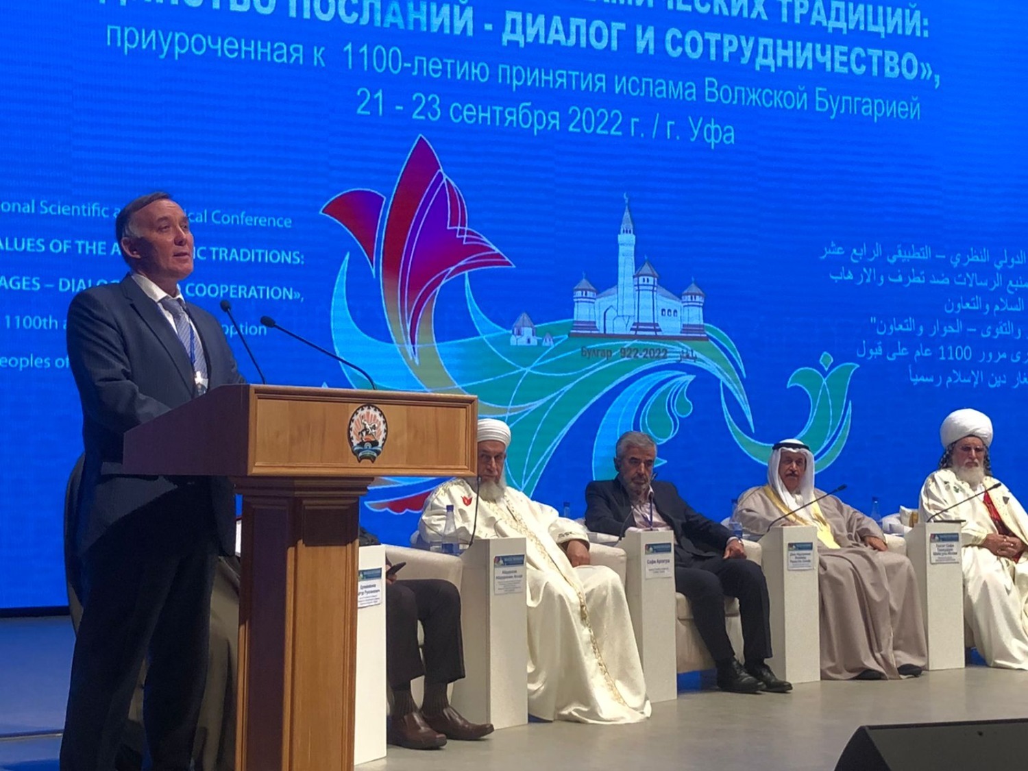 Состоявшееся 22 сентября пленарное заседание по случаю вышеназванных торжеств началось с чтения Корана. Далее с приветственным словом перед участниками выступил верховный муфтий России Талгат Таджуддин, подчеркнувший важность совершенного 1100 лет назад исторического шага. Он отметил, что в советский период истории религия подвергалась гонениям, однако в последние десятилетия отмечается существенный прогресс в развитии духовного сознания.