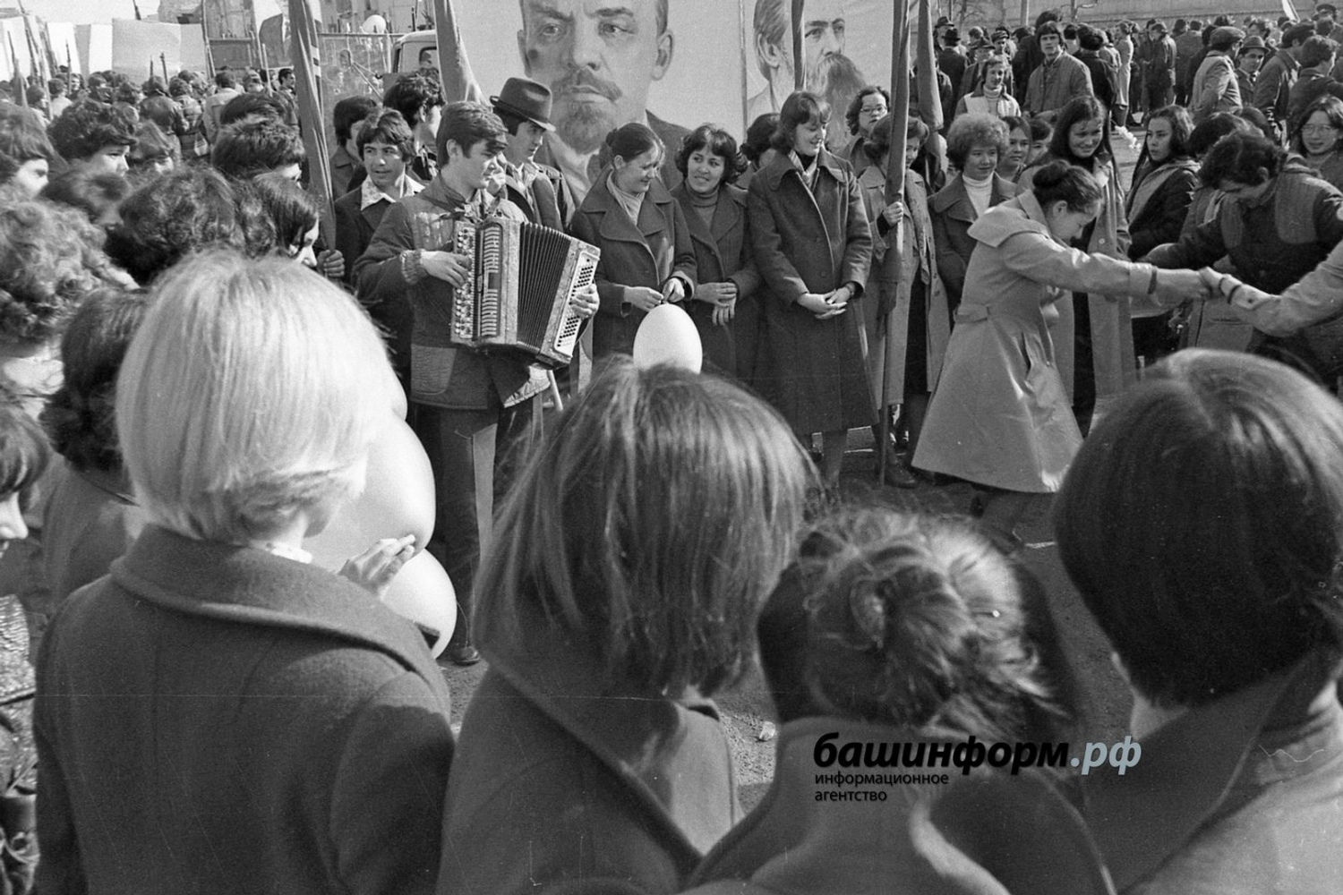 «Центральные улицы Уфы украшены лозунгами, Барабанный бой пионера сменяется звуками медных труб. На улице имени Сталина (ныне Коммунистическая) в два ряда выстроились автомобили с веселыми школьниками, а улицы Карла Маркса, Достоевского, Чернышевского. Пушкина заполнены колоннами демонстрантов, представлявших трудовые коллективы города». Так описывает газета «Красная Башкирия» демонстрацию, проходившую в Уфе 1 мая 1937 года. Люди пели песни, плясали, звучала гармонь. Помимо шествия трудящихся состоялся парад, в котором участвовали военные Уфимского гарнизона, работники военкоматов и воспитанники Осоавиахима, а молодые бойцы в этот день приняли присягу.