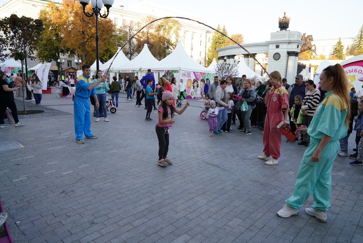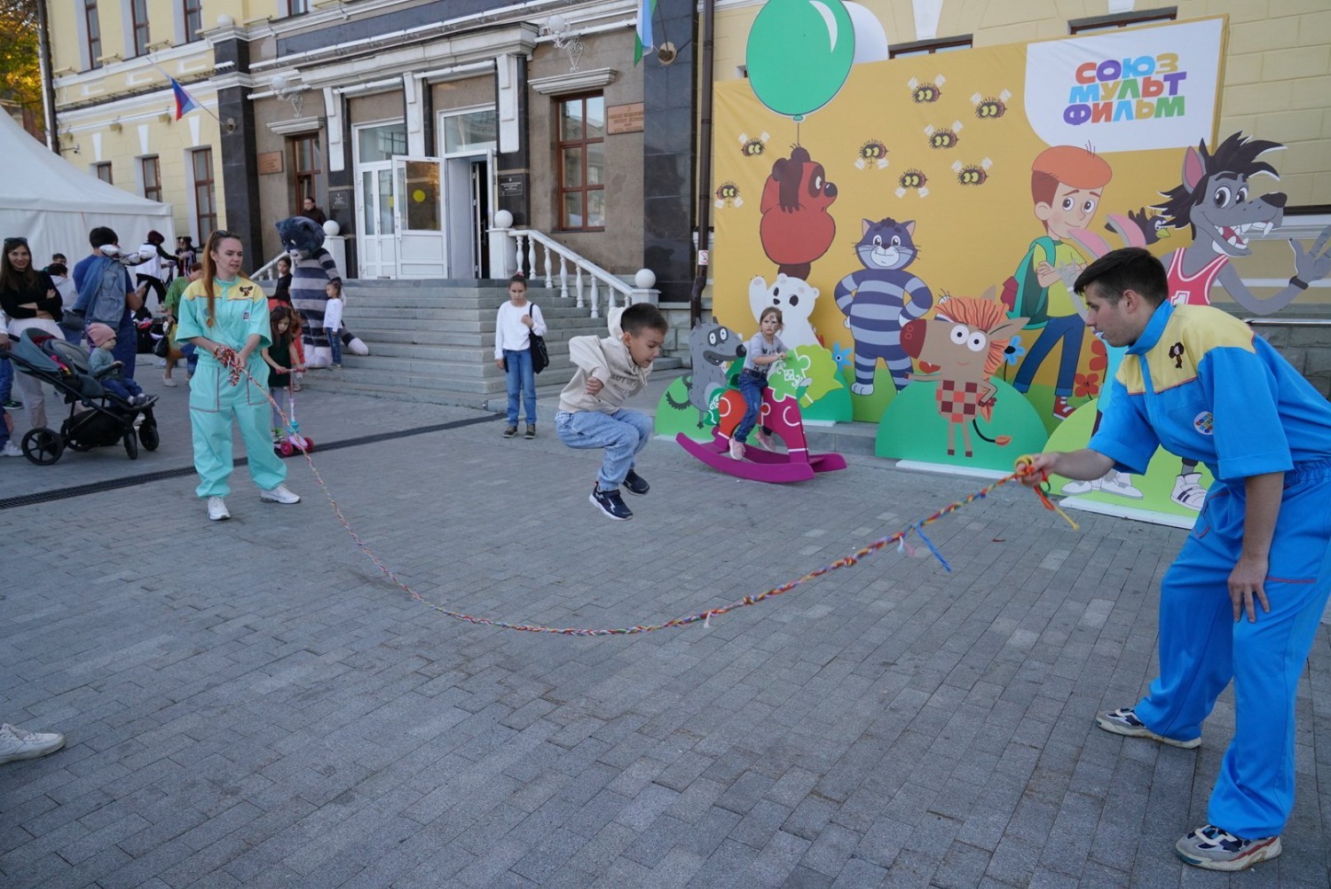 Советская площадь на 4 дня превратилась в настоящую территорию детства. Здесь проходили игры и соревнования, разгуливали ростовые куклы и герои мультфильмов, были организованы детские мастер-классы. Также было можно сфотографироваться с любимыми героями сказок.