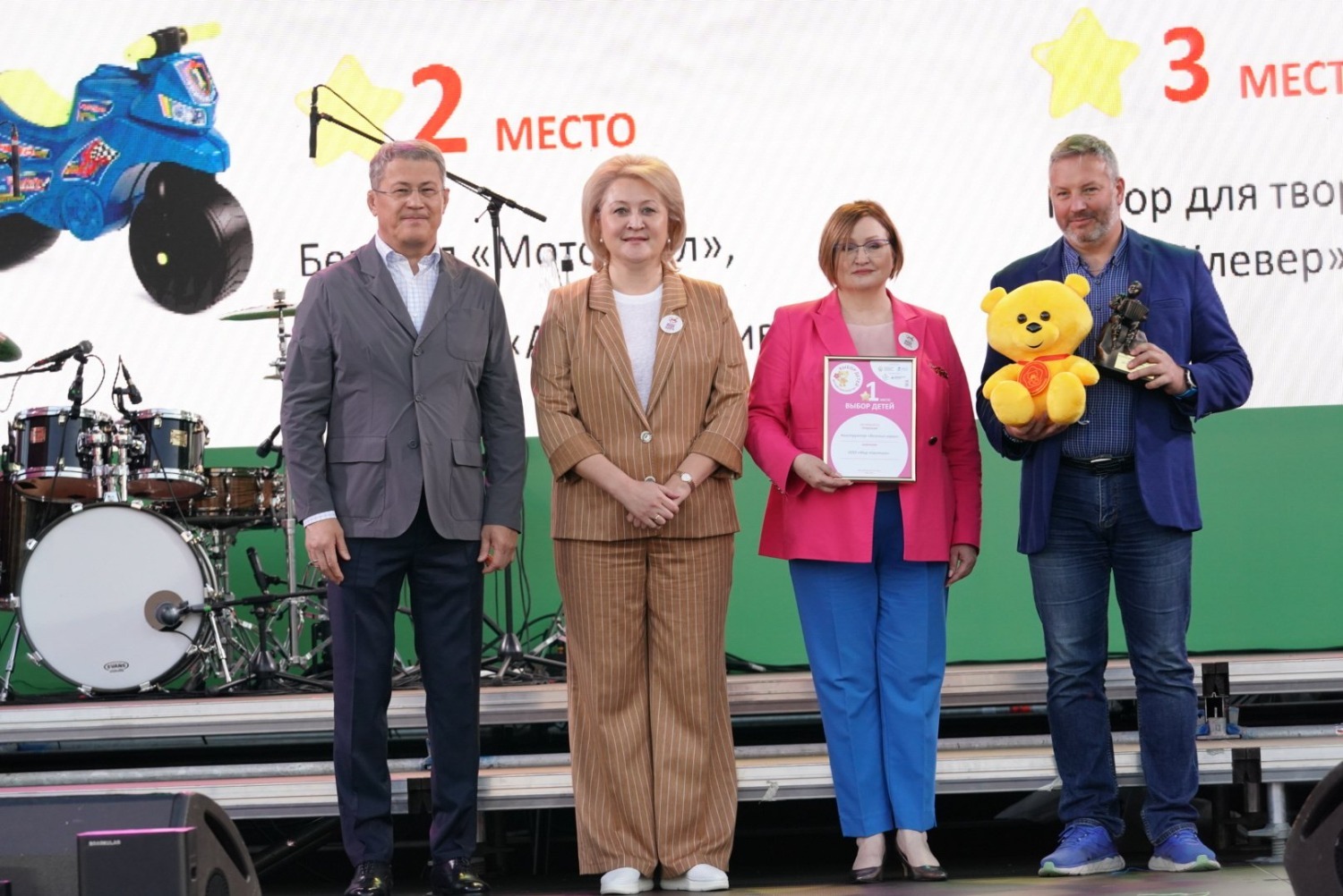 В номинации «Детский знак качества» победителем был объявлен конструктор «Веселые горки» компании «Мир пластика», знак доверия «МамаПапаЗа» получила мягкая игрушка Кот Басик, знак доверия «БабаДедаЗа» вручили компании «Спектр» за игровой набор «Торт». Педагоги, психологи и эксперты проголосовали за настольную игру «Россыпи таланта» компании «Юные таланты Башкортостана».