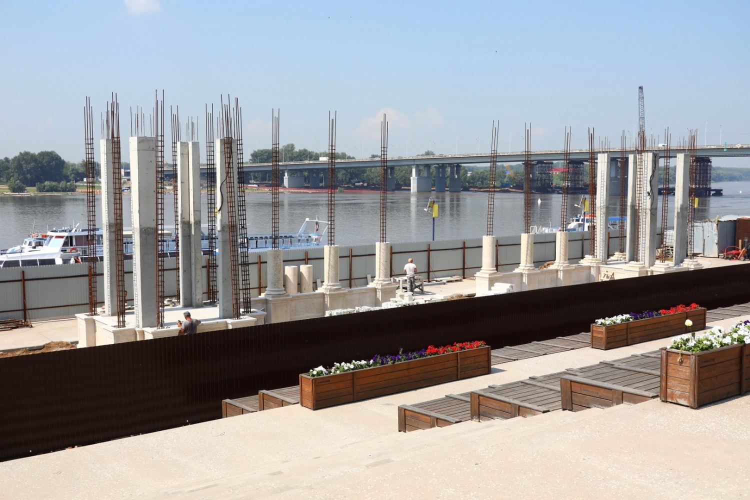 Строительство колоннады в Уфе началось в феврале нынешнего года, после проведения всех необходимых конкурсных процедур. Вот габариты сооружения: высота до 12 м, длина до 30 м, ширина – до 6 м. Все конструктивные элементы колоннады воспроизводят аналогичные с оригинального сооружения, для этой цели подготовлены специальные 3D-макеты. Надежность конструкции обеспечат более 40 бурозаливных свай, уходящих в землю на глубину 10 м. Строители залили фундамент и с каждым днем колоннада на набережной растет в высоту. Параллельно с этим ее облицовывают специальным камнем. Сооружение будет состоять из собственно колонн и двух ротонд, увенчанных куполами. Архитекторы позаботились о том, чтобы колоннада гармонично вписывалась в облик набережной. Ничего подобного в Уфе еще не было.