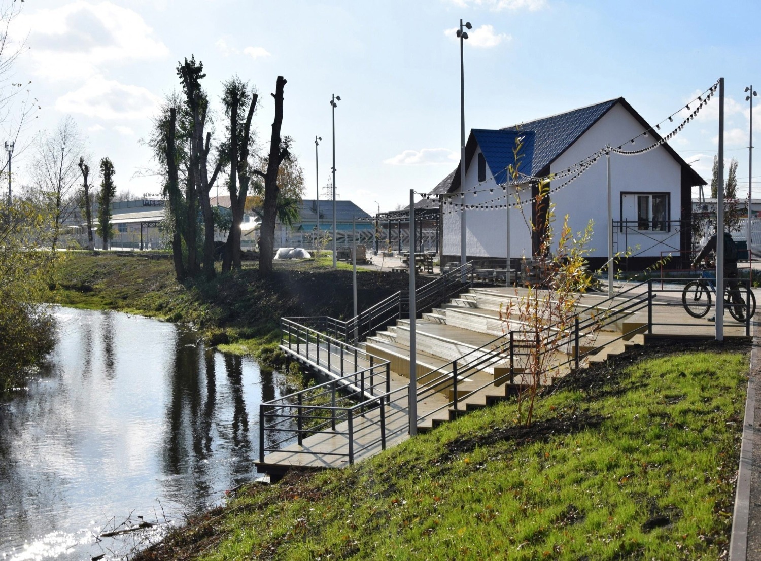 Проект гармонично соединяет набережную реки Мелеуз и городской рынок и связывает существующие точки притяжения в прогулочный велопешеходный маршрут. Велодорожка продолжается вдоль набережной, а основной путь ведёт на событийную площадь со сценой. В конце набережной спортивная зона, на которой расположены теннисные столы, тренажёры и воркаут, а также большой скейт-парк для молодёжи.