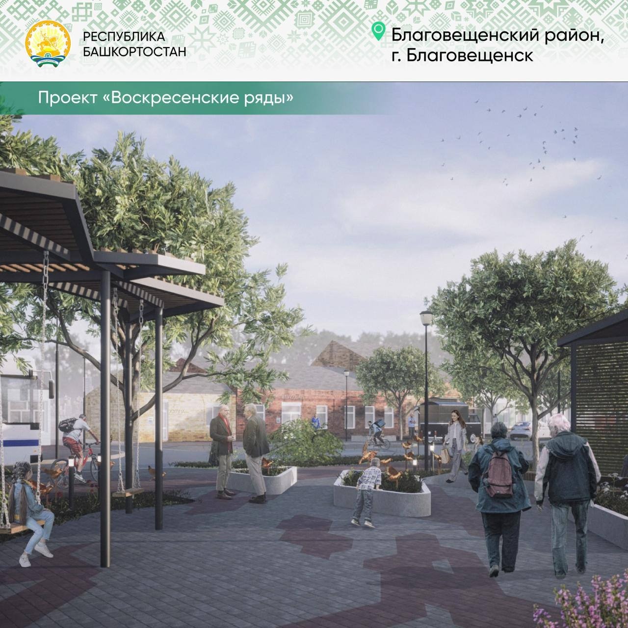 Проект «Воскресенские ряды» (Благовещенск), предусматривающий благоустройство части улицы Советской, призван осовременить ее, сохранив исторические ценности, смыслы, визуальные образы, максимально созвучные потребностям горожан. Обновленная улица свяжет значимые городские пространства: сквер Благовещенского арматурного завода, городской пруд и парк №1, аллею Дашковых, Большой остров.