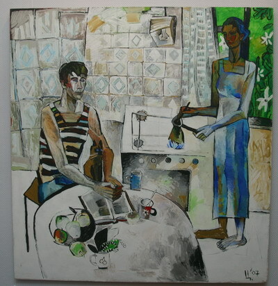 В живописных работах двух уфимских художниц нашли свое отражение предметы из повседневной жизни большинства людей - эмалированные чайники, валенки, которые сушатся на батарее, прорастающий на подоконнике лук, рассыпанная на полу вишня, которую нужно перебрать. В качестве персонажей картин также выступают самые обычные люди: девушка на диване, которая читает книгу, и уютно пристроившаяся у нее в ногах кошка, идущий по деревне солдат, сельская свадьба, завтракающая на кухне семья. Здесь прослеживается мотив и городской, и деревенской жизни.