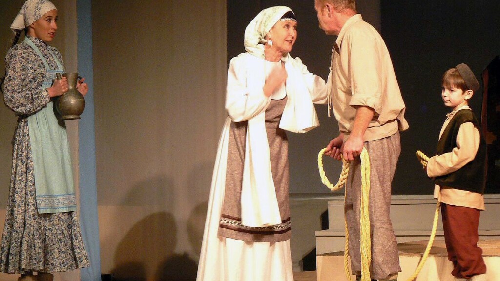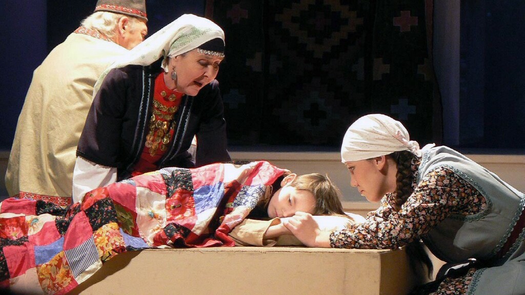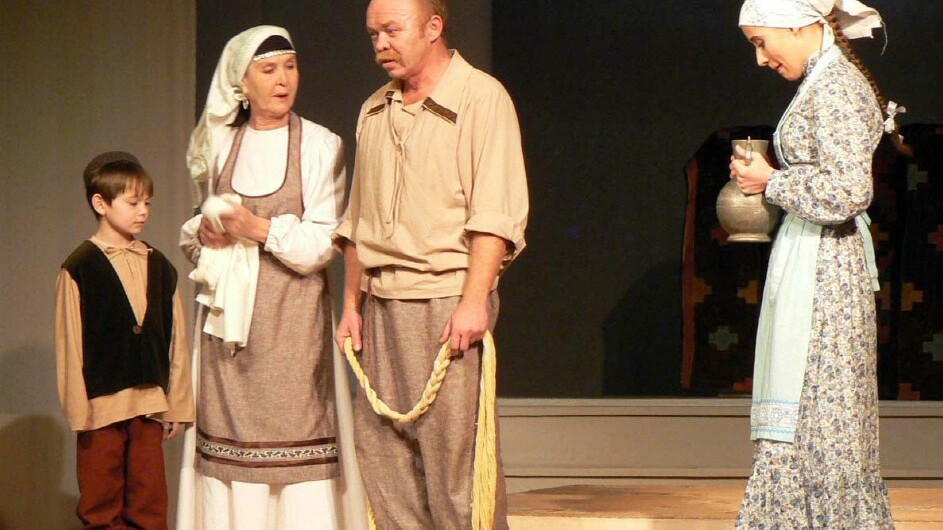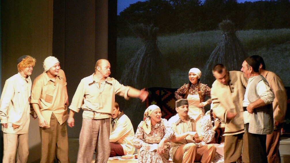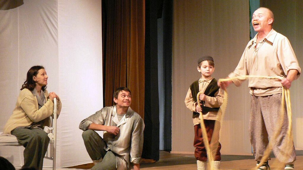 Объединив множество новелл в одно эмоциональное целое, режиссер и актеры сумели показать мир, который в пьесе видится глазами ребенка и человека, прошедшего войну. Детские воспоминания героя о событиях в деревне обрамили историю о любви, о жизни и смерти. Главного героя в спектакле, как в своих воспоминаниях, так и в настоящей жизни, играет Денис Хисамов, Людмилу - Ольга Франц. Роль старшей матери исполняет Зоя Киреева, младшей - Инга Яруллина. В спектакле занят почти весь актерский состав театра.