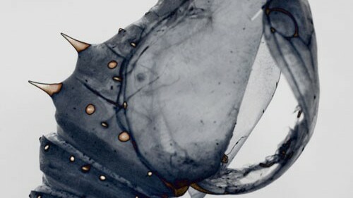 Зрители смогут разглядеть в фотографиях тончайшие фактуры микроскопических поверхностей, череп развивающегося эмбриона, резонансные колебания мембраны, тоненькие корешки, дающие начало растению, куколку бабочки в стадии метаморфозы.