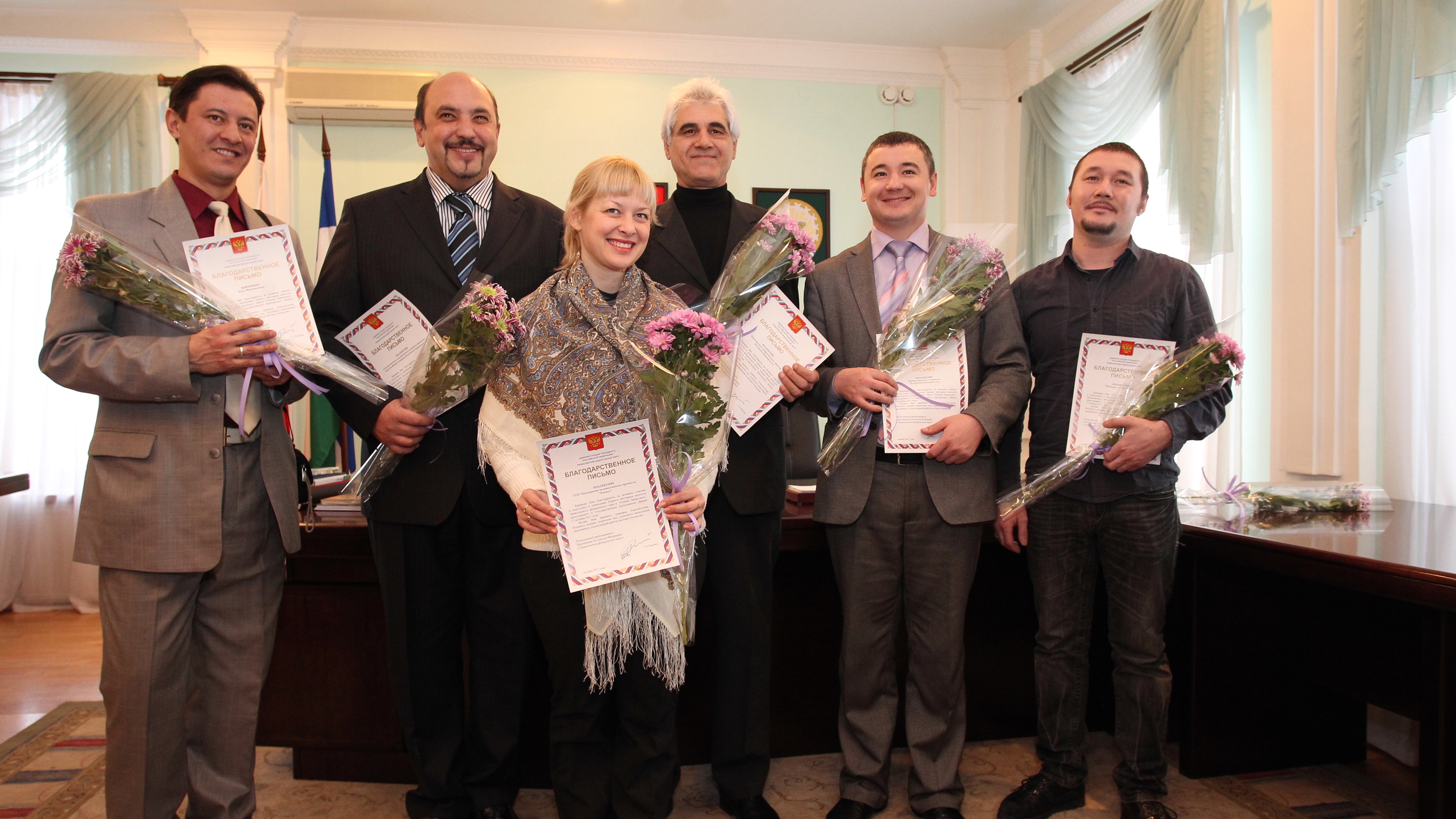 Ряд мастеров искусств Башкортостана награждены благодарственными письмами полномочного представителя Президента РФ в Приволжском федеральном округе. Обладателями государственных наград стали Национальный симфонический оркестр Башкортостана, Государственный академический ансамбль народного танца имени Файзи Гаскарова, этно-рок группа «Аргамак», ансамбль эстрадно-спортивного танца «Виктория» (Нефтекамск), Республиканский центр народного творчества, солист Башкирской государственной филармонии, кураист Азат Бикчурин, художественная мастерская «Девятов и К», Башкирские художественные промыслы «Агидель».