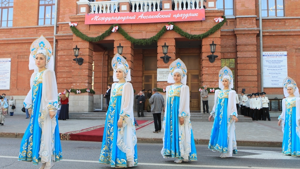 В Уфе перед зданием Башкирского государственного театра оперы и балета (бывшего Аксаковского народного дома) открылся 22-й международный Аксаковский праздник. Впервые костюмированный бал вышел на улицу – дело в том, что желающих принять участие в торжестве оказалось настолько много, что вместить всех стены театра не смогли. Одних только артистов оказалось 250 человек.