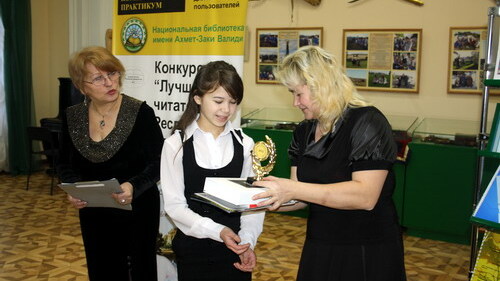 Итоги конкурса «Лучший читатель-2012» подвели в Национальной библиотеке РБ им. Ахмет-Заки Валиди. Победителями конкурса стали Милана Репьева, Ангелина Кириллова, Татьяна Павлова, Анна Шкуропатова из Миякинского района и Юлия Осипова из Аургазинского района.