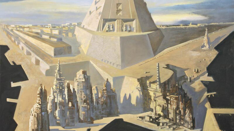 Работы Рафаэля Муратшина - в зале, посвященном экологическим и философским проблемам современности. Здесь доминирует серия «Атлантропа» Рината Миннебаева (техника - бумага ручного литья), рефлексирующая на проект немецкого инженера Зёргеля, предлагавшего построить плотину на Гибралтаре, осушить Средиземное море, обводнить Сахару, создать новый континент - Атлантропу. В связи с тем, что снова стали обсуждаться планы переброски части стока сибирских рек в Казахстан и Среднюю Азию, эта экологическая проблематика приобретает актуальность. Тема неизбежной катастрофы цивилизации, основанной на идее неограниченного роста, звучит в работах Сергея Краснова из серии «Атомный город». Скульптуры-колонны Фирданта Нуриахметова звучат, как обломки погибшей цивилизации.