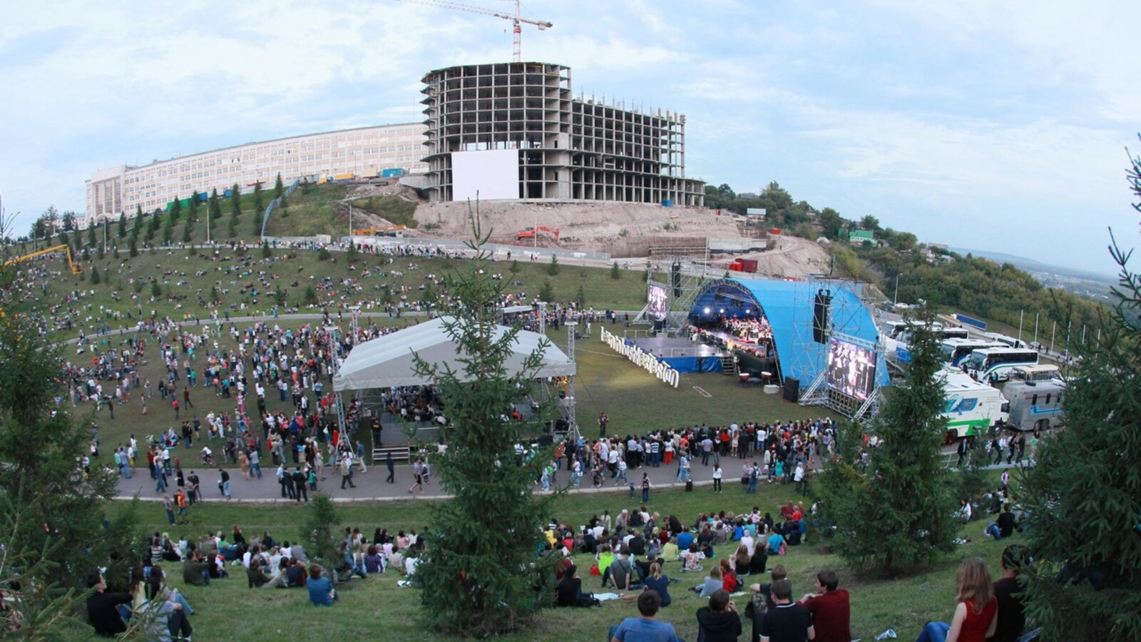 Уфимцы побывали на первом в истории города симфоническом концерте на открытом воздухе, прошедшем в Амфитеатре за Конгресс-холлом — естественном углублении между холмами над рекой Белой. Проект Национального симфонического оркестра РБ