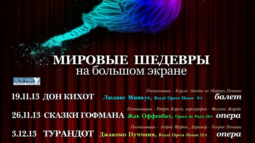 Как сообщила заместитель директора кинотеатра «Родина» Рида Утяшева, копии закуплены у российского дистрибьютора «НеваФильм Emotion». Кинопрокатное подразделение компании «НеваФильм» уже показывало в Уфе фильмы программы «Мировые шедевры на большом экране», представляющие записи оперных и балетных спектаклей. Кроме того, идут переговоры с той же петербургской компанией по поводу организации прямых трансляций спектаклей из театров Европы и США через спутник, рассказала Рида Утяшева.