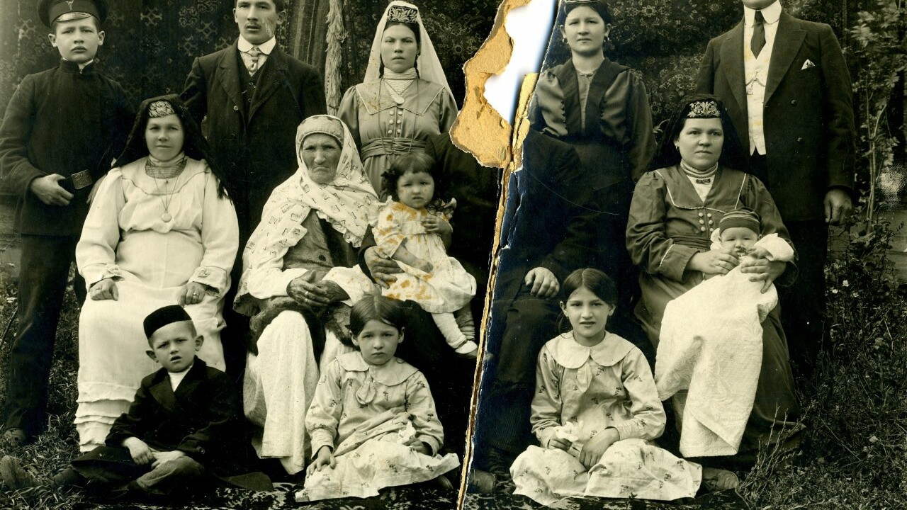 На черно-белых снимках: Роза Лукманова, жена Анвара Гафури; сын поэта Анвар Гафури, 1939 год; Раиф Анварович Гафури - старший внук поэта; семья купца Гусмана Лукманова.