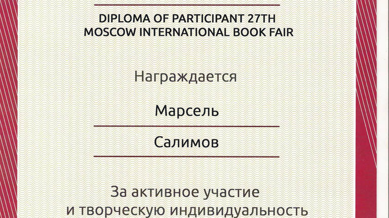 Он также принял участие в торжественных мероприятиях, посвященных 60-летию Интернационального союза писателей. Председатель Международного правления ИСП Александр Гриценко вручил Марселю Салимову международный паспорт писателя.