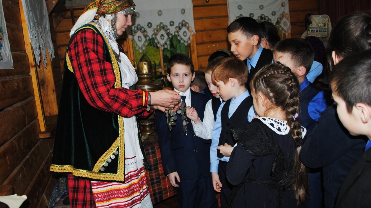 УФА, 16 мар 2015. /ИА «Башинформ», Арина Рахимкулова/. В Удмуртском историко-культурном центре «Новые Татышлы» прошел познавательный час, посвященный традиционной национальной одежде. Заведующая ИКЦ Лира Рахимьянова рассказала школьникам Татышлинского района об истории удмуртского костюма и его элементах. Учащимся была предоставлена возможность примерить вещи, организована фотосессия в национальных костюмах.