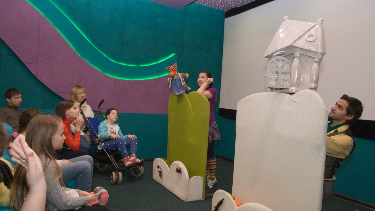 Сегодня центр принял первых гостей — 20 детишек с ограниченными возможностями здоровья вместе с родителями. Открыли программу ведущие — народный артист Башкортостана Александр Кузьменко и Соня Журавлева. Публике показали спектакль по мотивам русской народной сказки «Заяц, лиса и петух» в исполнении студентов выпускного курса Уфимской академии искусств. Специальный курс-студия Башкирского театра кукол, которым руководит известный актер и режиссер Юрий Заяц, превратил спектакль в увлекательную интерактивную игру. Также детей порадовали концертной программой и показом мультфильма киностудии «Башкортостан» «Алдар и серый волк».