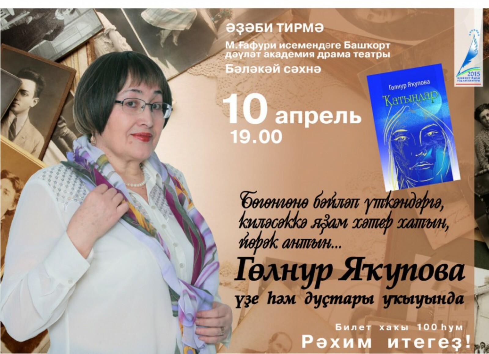 УФА, 6 апр 2015. /ИА «Башинформ», Лейла Аралбаева/. 10 апреля в Башкирском театре драмы им. М.Гафури состоится очередная Литературная гостиная в рамках культурно-образовательного проекта «Театр+». На этот раз любителей национальной литературы ждет встреча с башкирской писательницей Гульнур Якуповой.