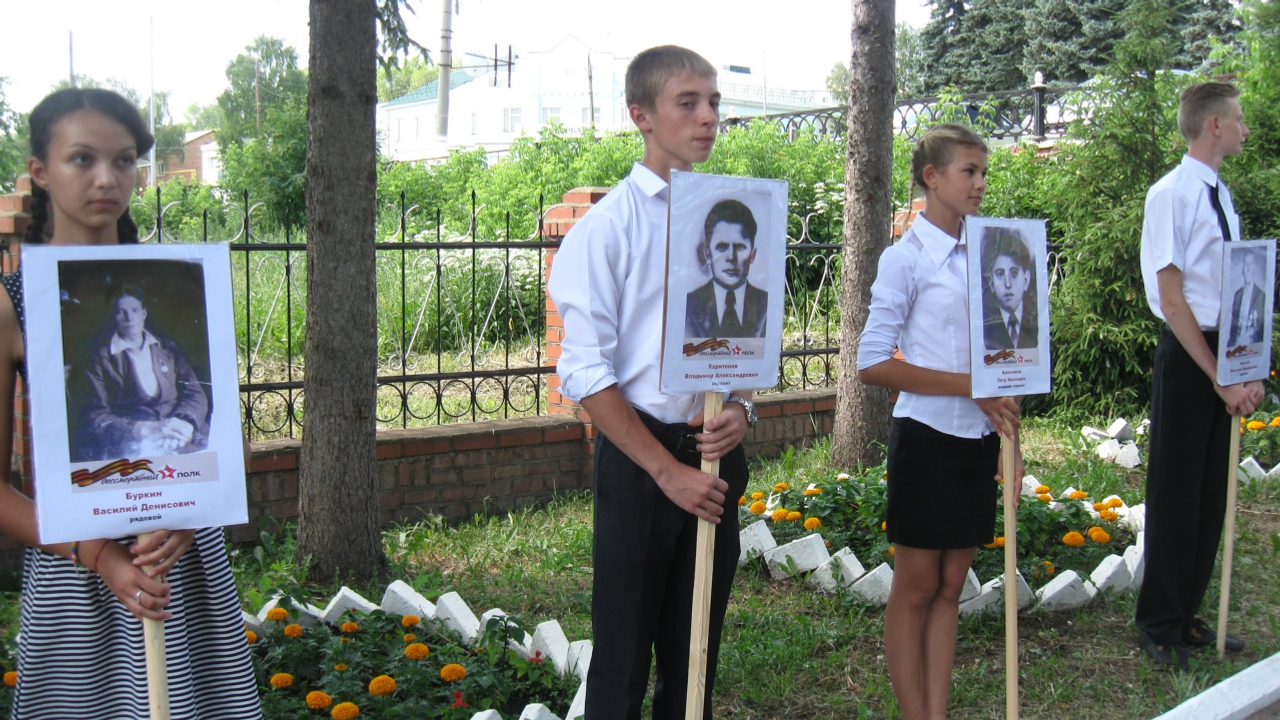 Во второй половине дня делегация Союза писателей РБ приняла участие в возложении цветов к памятнику Воину-освободителю и к памятнику участникам локальных войн. Вдоль аллеи в парке культуры и отдыха выстроились школьники с портретами своих родственников – участников Великой Отечественной войны.