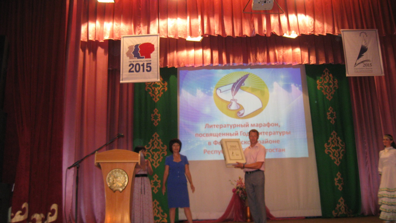 По сложившейся традиции на сцене Дома культуры состоялась церемония передачи большой Книги - символа литературного марафона. Эстафета перешла от Стерлибашевского района к Федоровскому. Оба района не только соседи, но и добрые друзья.