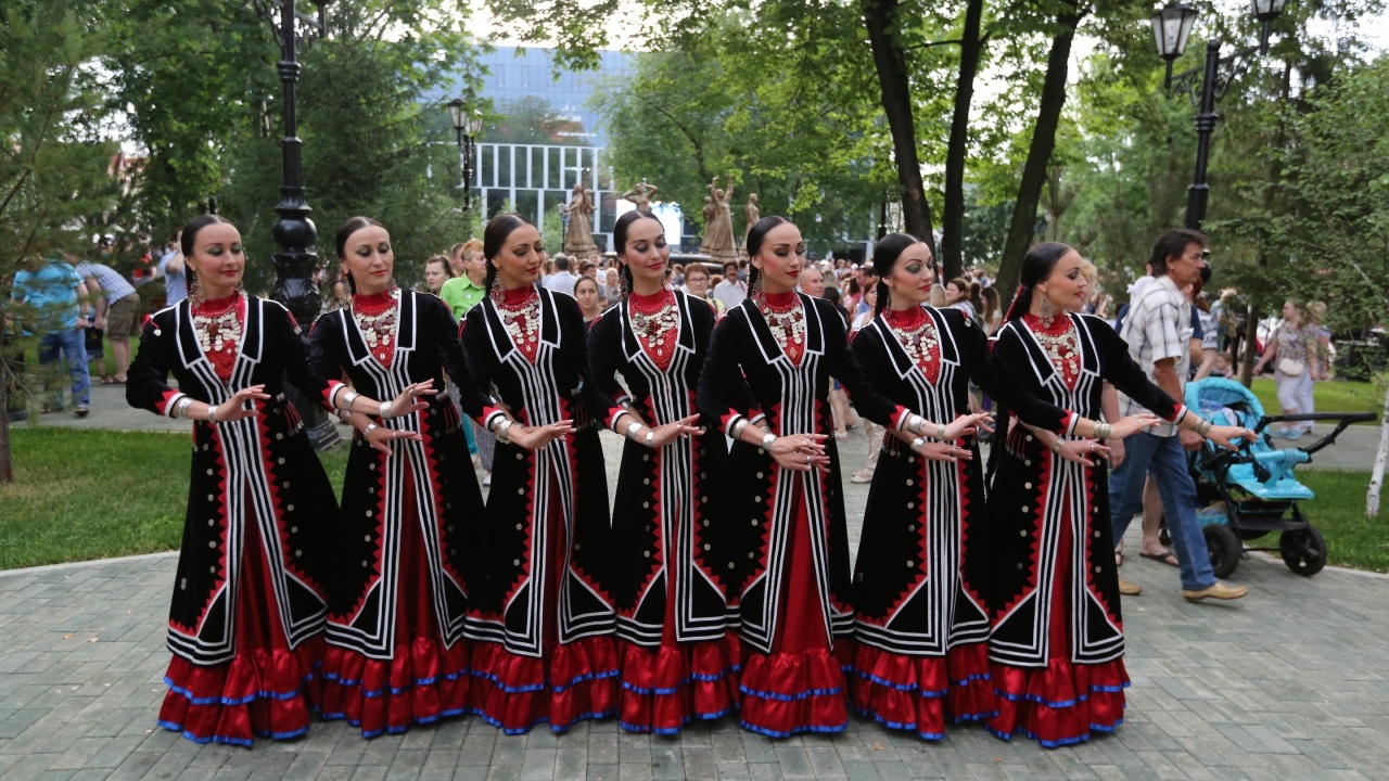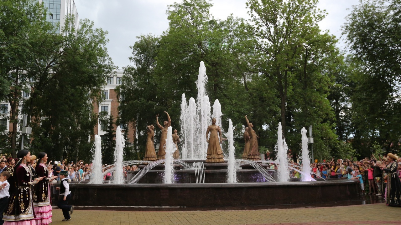 Перед пуском фонтана Молодежный симфонический оркестр Республики Башкортостан представил концертную программу, а артисты Государственного академического ансамбля народного танца имени Ф. Гаскарова исполнили танец «Семь девушек».
