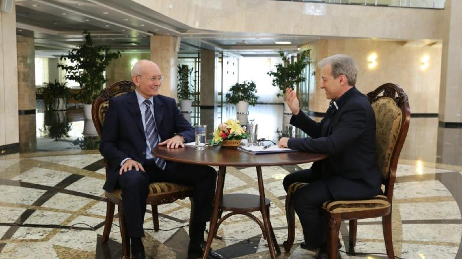 УФА, 2 июл 2015. /ИА «Башинформ», Сергей Захаров/. Рустэм Хамитов встретился с обозревателем телеканала «Россия-Культура» Владиславом Флярковским. В Уфе телеведущий дал старт региональному вещанию телеканала, которое возобновилось по поручению Главы республики.