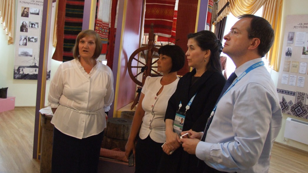 УФА, 8 июл 2015. /ИА «Башинформ», Лейла Аралбаева/. Министр культуры Российской Федерации Владимир Мединский в рамках своего визита в Башкирию для участия в саммитах ШОС и БРИКС посетил Кармаскалинский район. В селе Ильтеряково глава федерального ведомства ознакомился с работой Многофункционального культурного центра. Работу МФКЦ Владимир Мединский оценил на «отлично» и отметил важность для населения подобных учреждений. Министр предложил разработать методички по работе МФКЦ с целью распространения опыта Башкирии в другие регионы России.