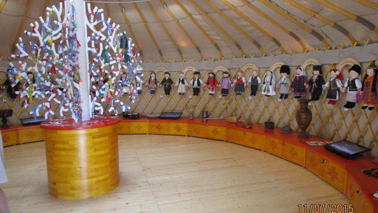 Первая юрта представляет быт башкир и предметы домашнего обихода. Вторая — народные ремесла: войлоковаляние, резьба по дереву, приготовление кумыса. В третьей юрте посетители узнают о богатстве башкирских недр: нефти, золоте, яшме, меди, металлах, полудрагоценных камнях. Четвертая юрта рассказывает о природе края и его богатствах, здесь можно попробовать мед и кумыс. Пятая юрта знакомит с многочисленными национальностями, живущими в Башкортостане в мире и согласии. В шестой юрте можно примерить национальные костюмы, принять участие в обрядах, сфотографироваться в разных образах. В седьмой юрте гостям показывают архитектурное будущее Уфы.