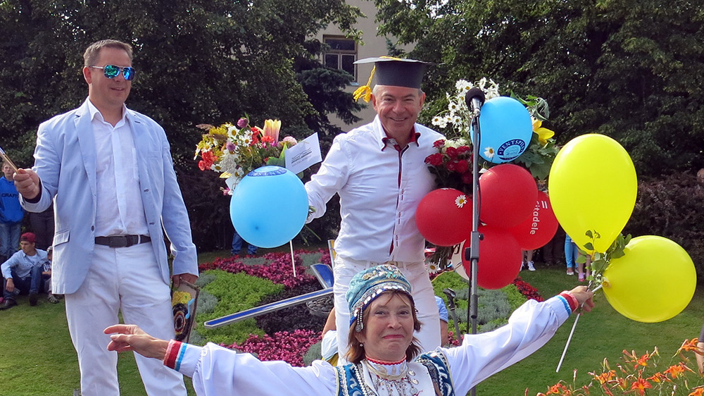 От Башкортостана гостей праздника приветствовала представитель Комитета РБ по делам ЮНЕСКО в Латвии Рина Хамитова. Она поблагодарила своих земляков за большой вклад в сохранение и развитие башкирской культуры, укрепление дружбы и сотрудничества между народами. В этот день на главную сцену Вентспилса от башкирской диаспоры Латвии поднялись также оперная певица Элина Митина и хореографический танцевальный детский ансамбль «Конфетти». Руководитель коллектива Ляля Басманова - известный хореограф, которая создает танцевальные шедевры, в том числе и башкирские постановки.