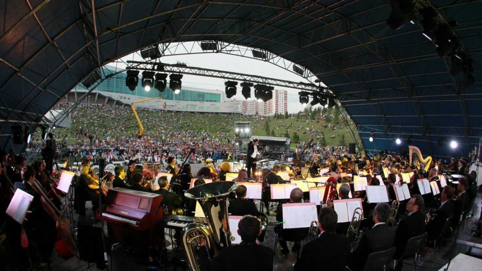 Весь вечер на сцене под открытым небом будут выступать два творческих коллектива — Национальный симфонический оркестр и Молодежный симфонический оркестр. За пультом сменят друг друга заслуженный деятель искусств России, народный артист Республики Башкортостан, лауреат Национальной театральной премии «Золотая маска» Валерий Платонов, заслуженный артист Башкортостана, главный дирижер Башкирского государственного театра оперы и балета Артем Макаров, главный дирижер Национального симфонического оркестра Башкортостана Раушан Якупов и лауреат международных конкурсов Линар Давлетбаев.