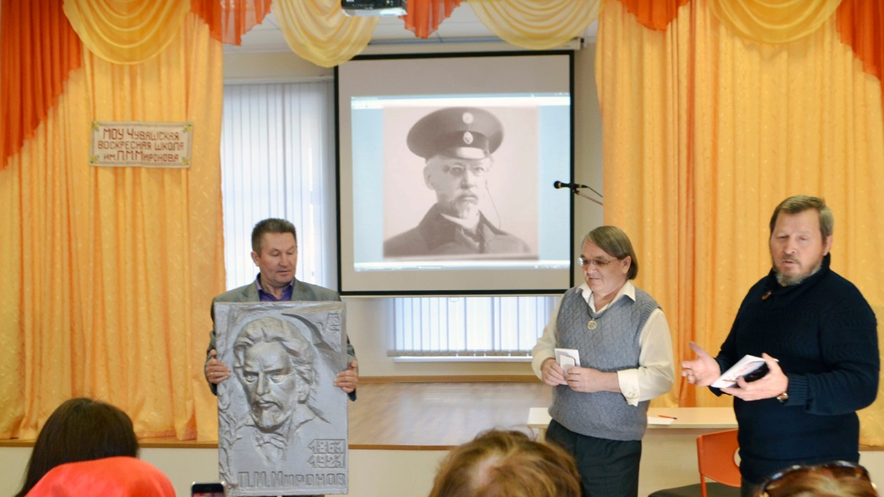 Скульптор подарил школе пять новых своих альбомов и книг, а также барельеф Павла Миронова, изготовленный им специально для учебного заведения, сообщил директор Чувашской воскресной школы Иван Тарасов.