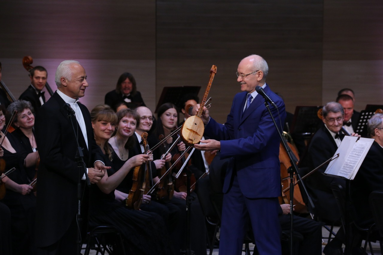 В честь дня рождения маэстро Рустэм Хамитов подарил ему национальный башкирский инструмент – домбру.
