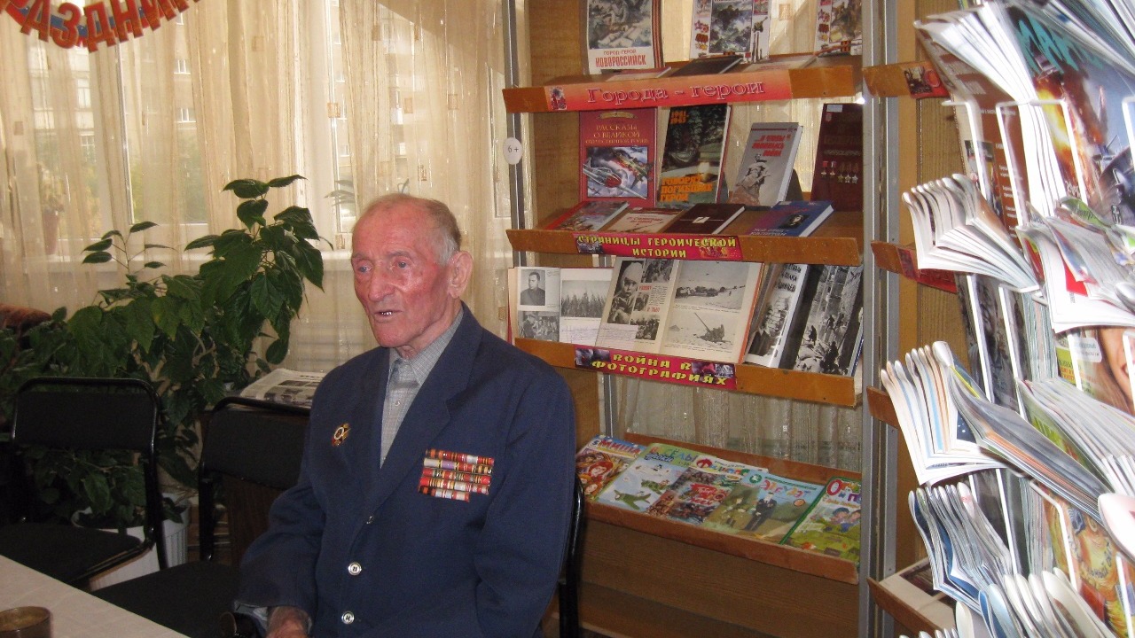 Затем слово было предоставлено фронтовику Ивану Волкову. В детской библиотеке он частый гость и, насколько позволяет здоровье, откликается на приглашение выступить перед юными слушателями со своими стихами и рассказами о войне. Иван Игнатьевич родом из Омской области. После обучения летной специальности был направлен на Дальний Восток, участвовал в войне с Японией. Потом до 1956 года трудился фотокорреспондентом в газете «Чкаловец». Последние годы, после смерти супруги, он живет в Уфе у дочери. Продолжает сочинять стихи и очень переживает, что в мире опять неспокойно.