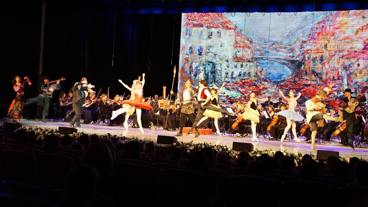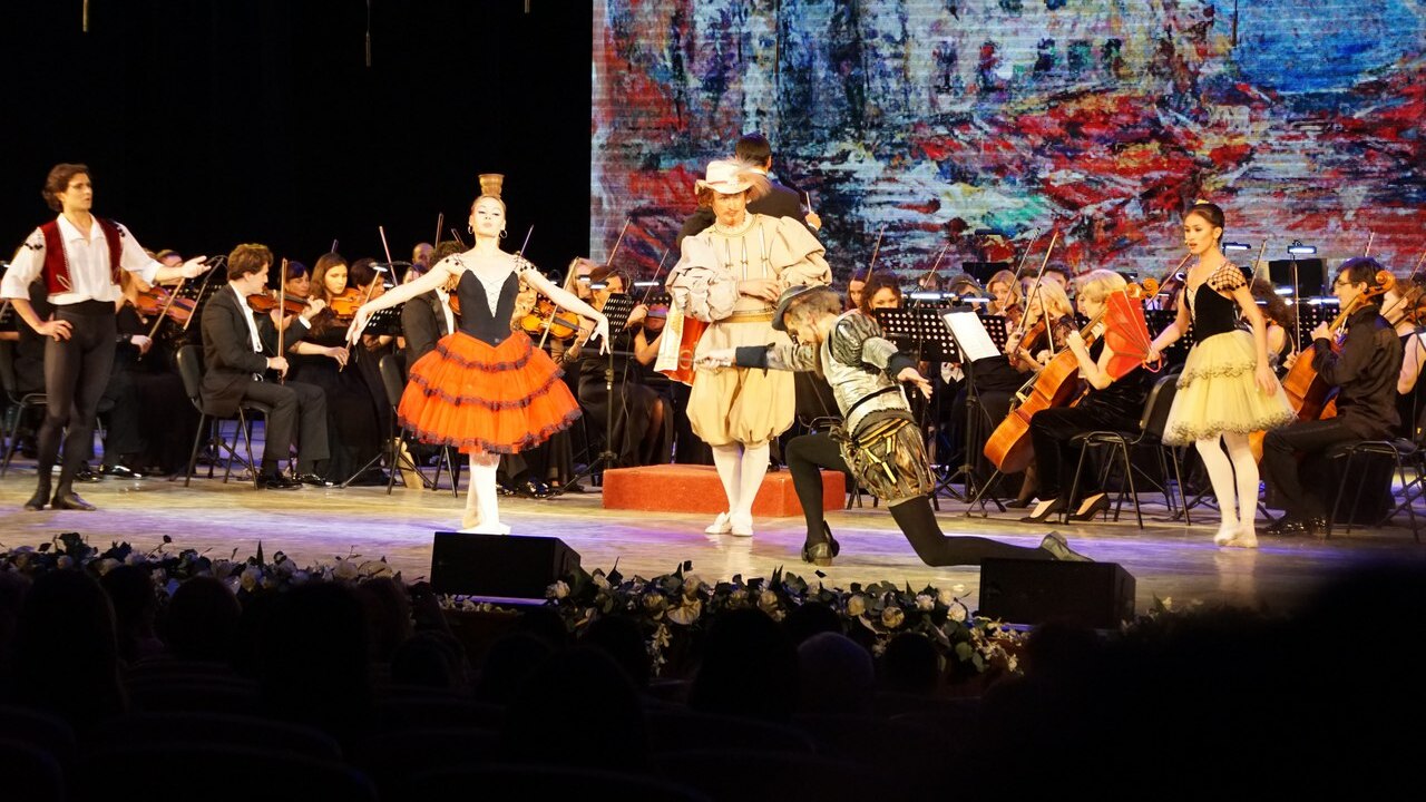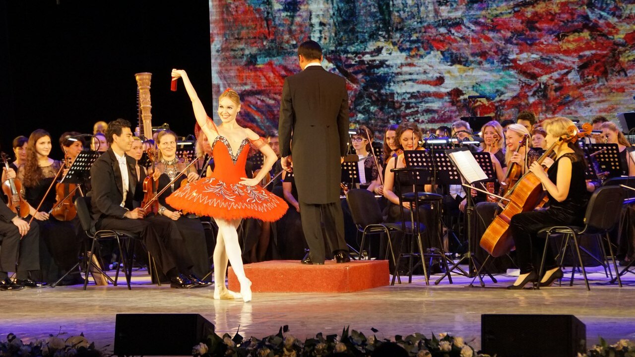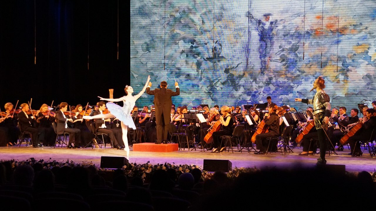 Программа «Волшебный мир балета» представила зрителям фрагменты из легендарных произведений - балетов «Дон Кихот» и «Золушка». В первой части концерта Владимир Васильев пересказал знаменитую историю Шарля Перро о Золушке под музыку Сергея Прокофьева из одноименного балета. Повествование под эпизодические выступления оркестра под управлением дирижера Раушана Якупова сопровождалось видеорядом, составленным на основе постановки «Золушки» 25-летней давности, в которой танцевал сам Владимир Васильев.