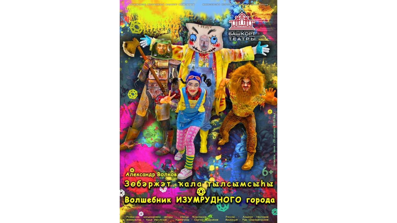 УФА, 28 сен 2015. /ИА «Башинформ», Лейла Аралбаева/. В Башкирском театре драмы имени Мажита Гафури поставили детскую сказку «Волшебник изумрудного города» по произведению Александра Волкова. Первая премьера начинающегося 96-го сезона будет представлена юным зрителям завтра, 29 сентября, в 11.00.