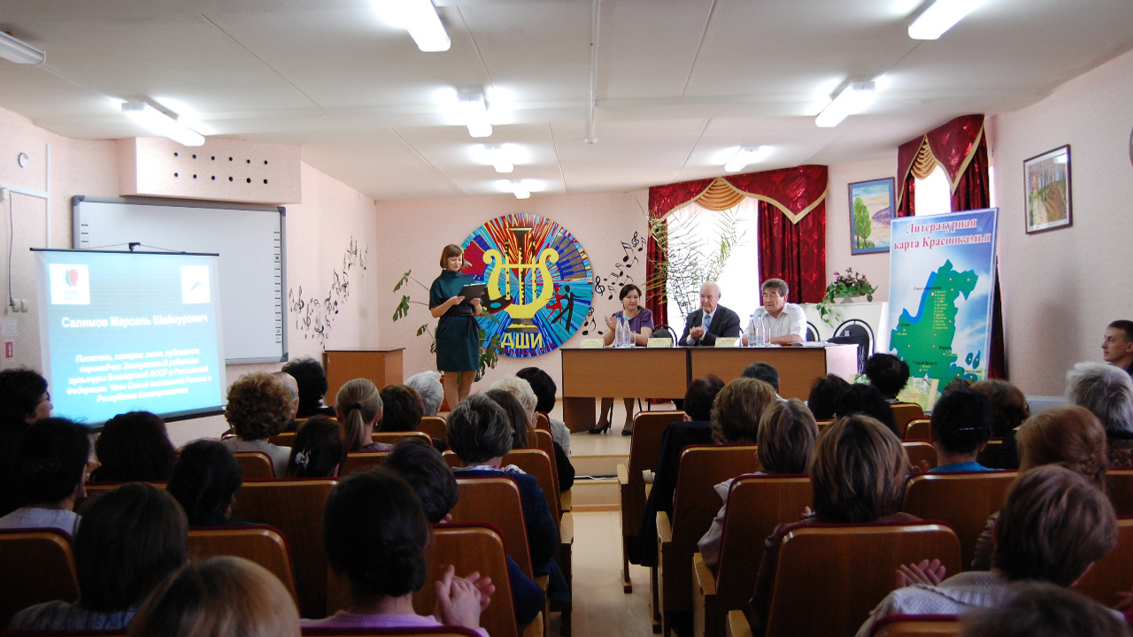УФА, 1 окт 2015. /ИА «Башинформ», Лейла Аралбаева/. Марафон, посвященный Году литературы, продолжается в Башкортостане. 29 сентября Краснокамский район принял эстафету от города Нефтекамска. Для участия в торжественных мероприятиях приехала делегация литераторов из Уфы во главе с писателем-сатириком Марселем Салимовым. Местное творческое сообщество представляли писатели и поэты Краснокамского района.