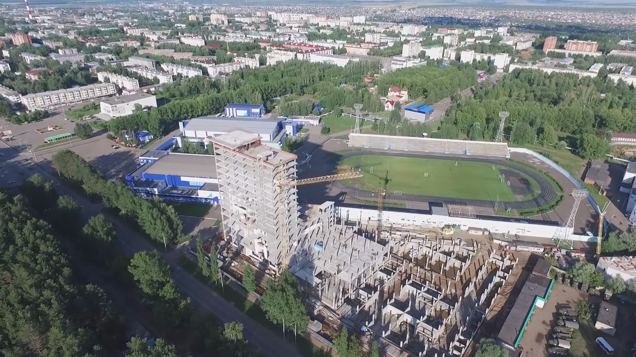 В кадре – город Нефтекамск с высоты, дома и улицы, его молодые жители с новым поколением в колясках.