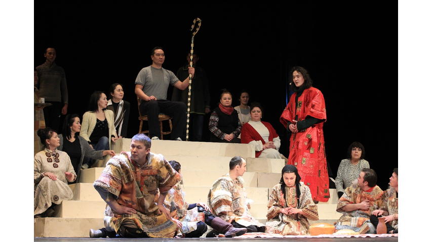 — Изначально подразумевался мюзикл, но поскольку у нас драматический театр, решили ставить как музыкальную легенду. Пока у нас 11 песен. Игра также пронизана музыкой, будет несколько лейтмотивов — их распределение еще в процессе, в том числе есть лейтмотив любви. Пение актеров будет живым. В музыке используются непривычные стили и лады: не башкирские, а восточные, — рассказал композитор Урал Идельбаев.