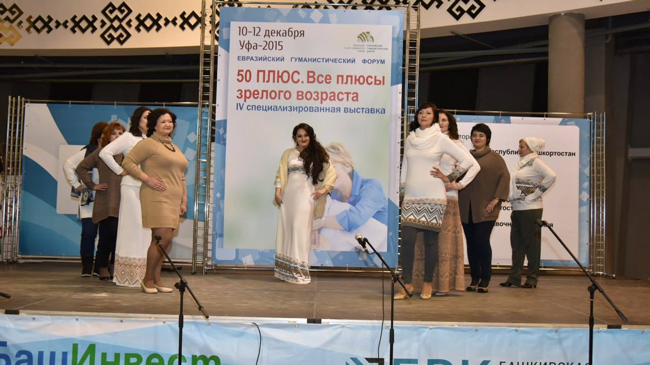 УФА, 11 дек 2015. /ИА «Башинформ», Лейла Аралбаева/. На IV специализированной выставке «50 Плюс. Все плюсы зрелого возраста» Эльвира Ишмуратова и студия «Stikhia» совместно с предприятием уфимского трикотажа «TRICARDO» представили новый специальный показ. Выставка разместилась в павильоне комплекса «ВДНХ-Экспо» в рамках Евразийского гуманистического форума.