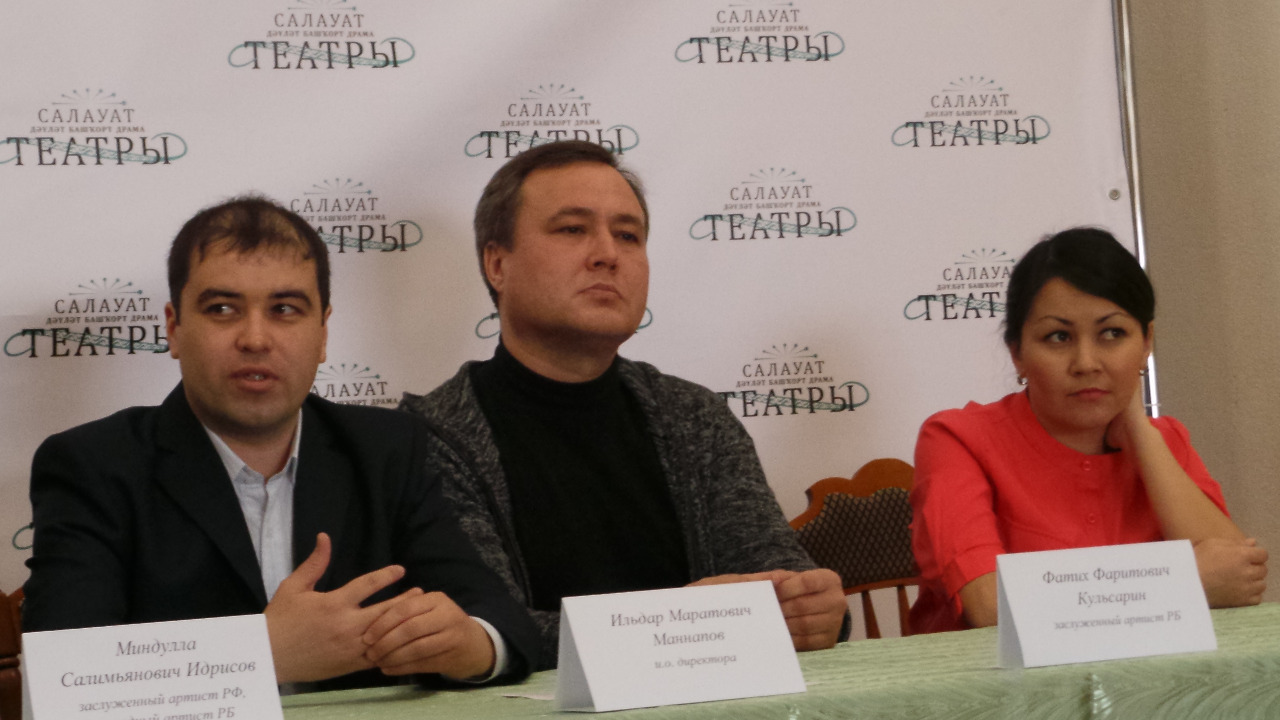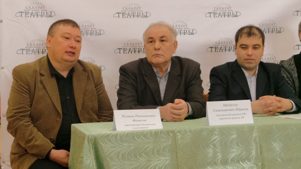 УФА, 18 фев 2016. /ИА «Башинформ», Лейла Аралбаева/. Салаватский государственный башкирский драматический театр приезжает на гастроли в Уфу. О гастрольной афише и о сегодняшних буднях театра рассказали на пресс-конференции его руководители — и.о. директора Ильдар Маннапов, управляющий творческим коллективом Рустам Фазылов и актеры — заслуженный артист РФ, народный артист РБ Миндулла Идрисов, заслуженные артисты РБ Фатих Кульсарин и Науфиля Якупова.