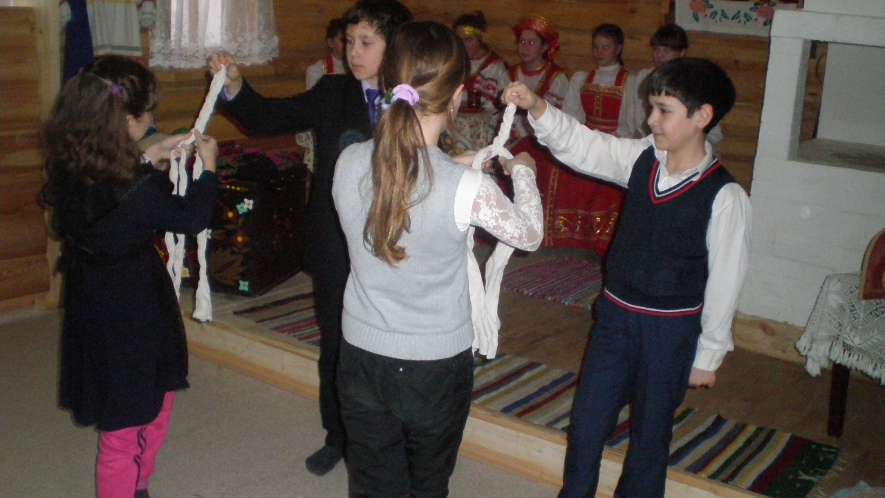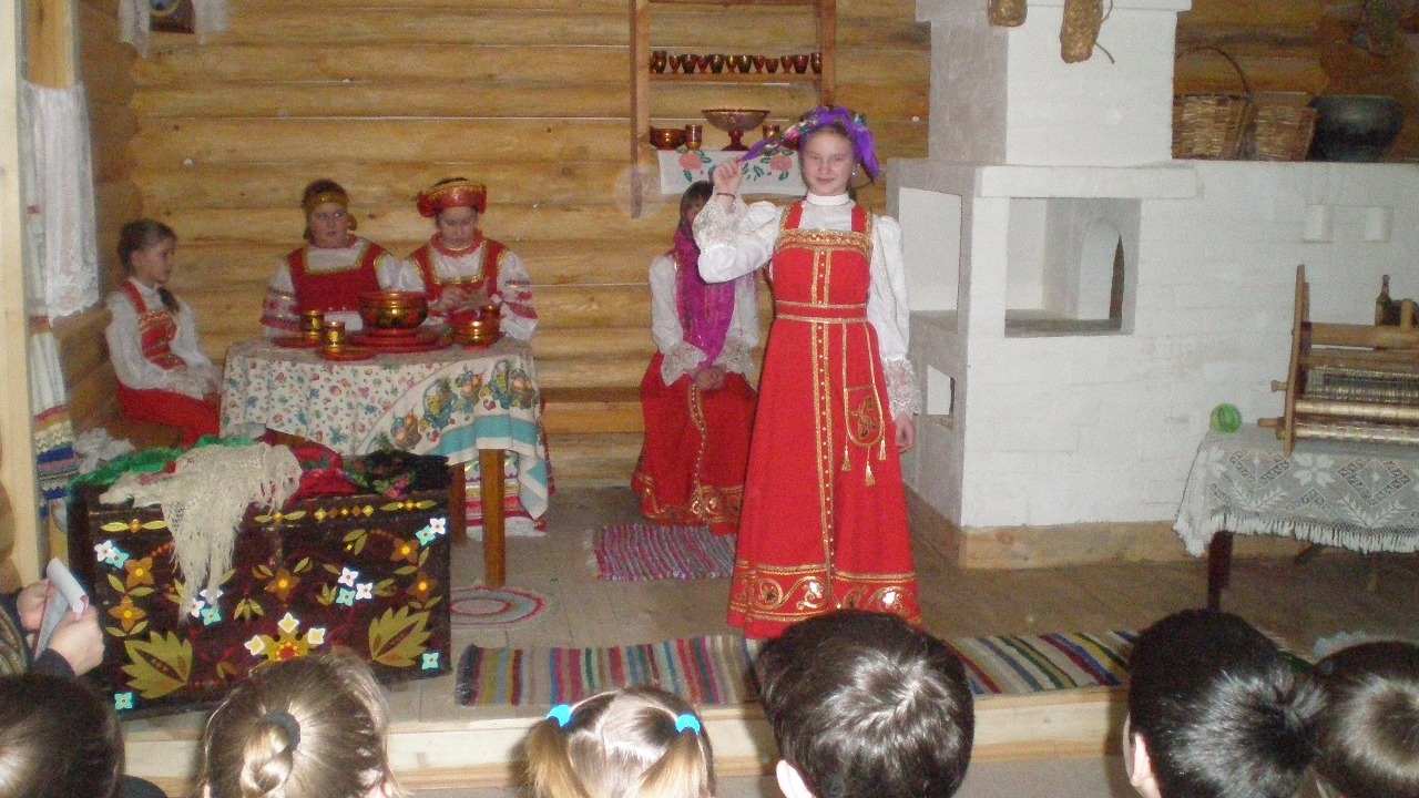 Посиделки проходили в музее ИКЦ «Русский дом». Участницы фольклорного коллектива «Кудринки» Камила Ягафарова, Рената Валиуллина, Ульяна Шарипова, Елизавета Чиглинцева, Валерия Никишина рассказали присутствующим об истории русских причесок, о ношении славянского головного убора - платка, поделились старинными секретами ухода за волосами.