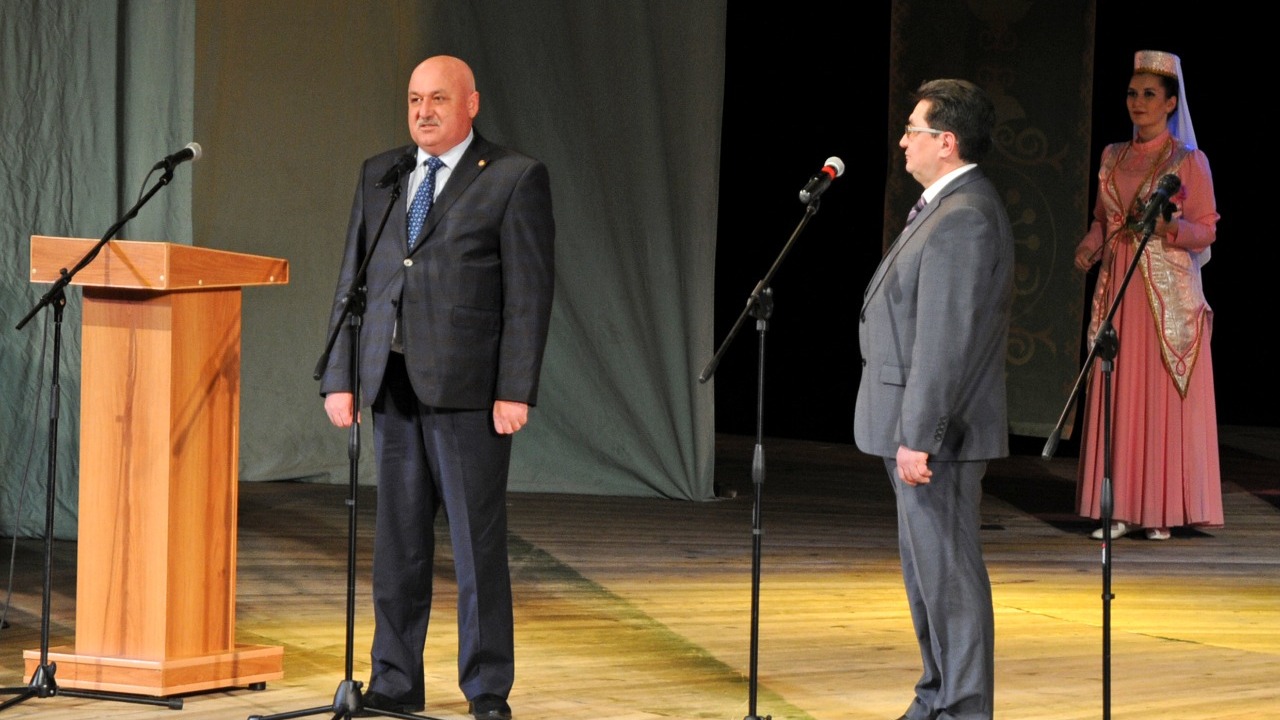 В завершение вечера Рустам Багаутдинов вручил эстафету проекта «Кызыл таң»ның жырлы кичләре» заместителю главы администрации Мелеузовского района Геннадию Шлычкову.