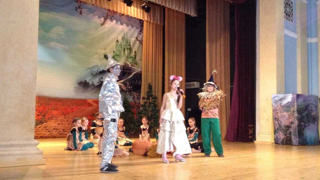 УФА, 26 мар 2016. /ИА «Башинформ», Эльмира Сабирова/. В Уфе юные актеры, воспитанники детского театра «Ассорти» представили мюзикл по мотивам сказки Александра Волкова «Волшебник изумрудного города». Премьера прошла на сцене Уфимского городского Дворца детского творчества им. Комарова в субботу, 26 марта.